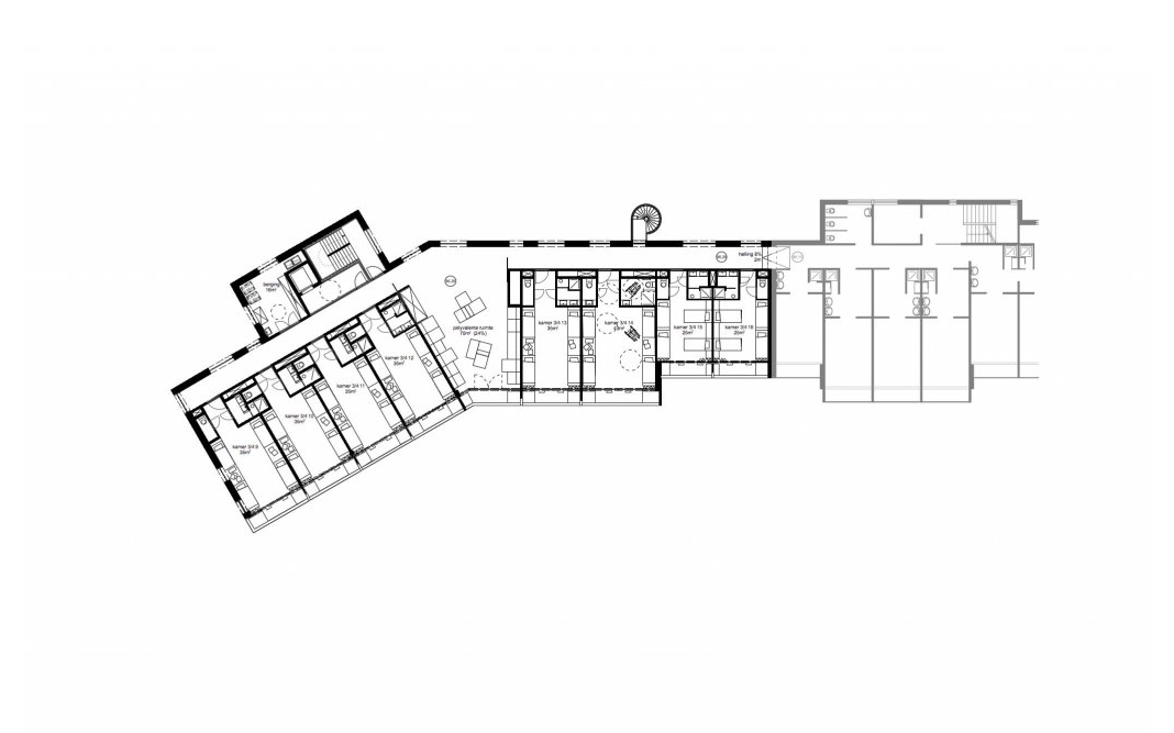 The extension for the existing dormitory block at the center for young people, art and creativity Destelheide provides sleeping facilities for 82 people with a multi-purpose activity room on each of the three levels. The new design is directly linked to the existing blocks for budget- and accessibility reasons. All the rooms have a private terrace facing south with a view over the valley. On the ground level a covered square is provided in direct contact with the outdoor activity field. The pavilion is located on the edge of the terrain half sunken in the hill. This ensures a more private environment, separated from the rest of the complex. The first two levels provide sleeping facilities for 16 people. On the top level a meeting room with panoramic 180° terrace is located with an excellent view over de valley. Both the expansion and pavilion are direct interpretations of the existing modernistic architecture of Paul Felix.