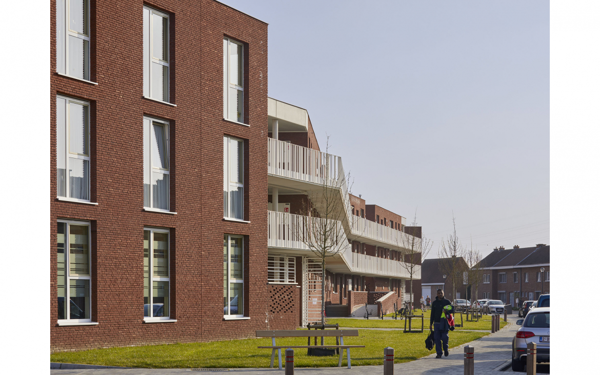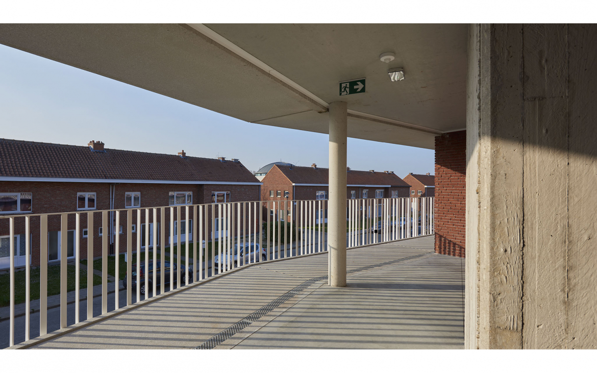 In the existing situation several independent buildings were positioned in a green area, creating a scattered leftover space. Our main goal was to design a building that concentrates the scattered leftover space into one continuous garden for the whole neighborhood. The building is located near the street, creating a facade towards the street, a buffer between the street and the garden and allowing a front garden promenade. The volume is divided into three parts, creating two passages towards the garden area. The environment has a clear hierarchy; public in front, more private in the back.